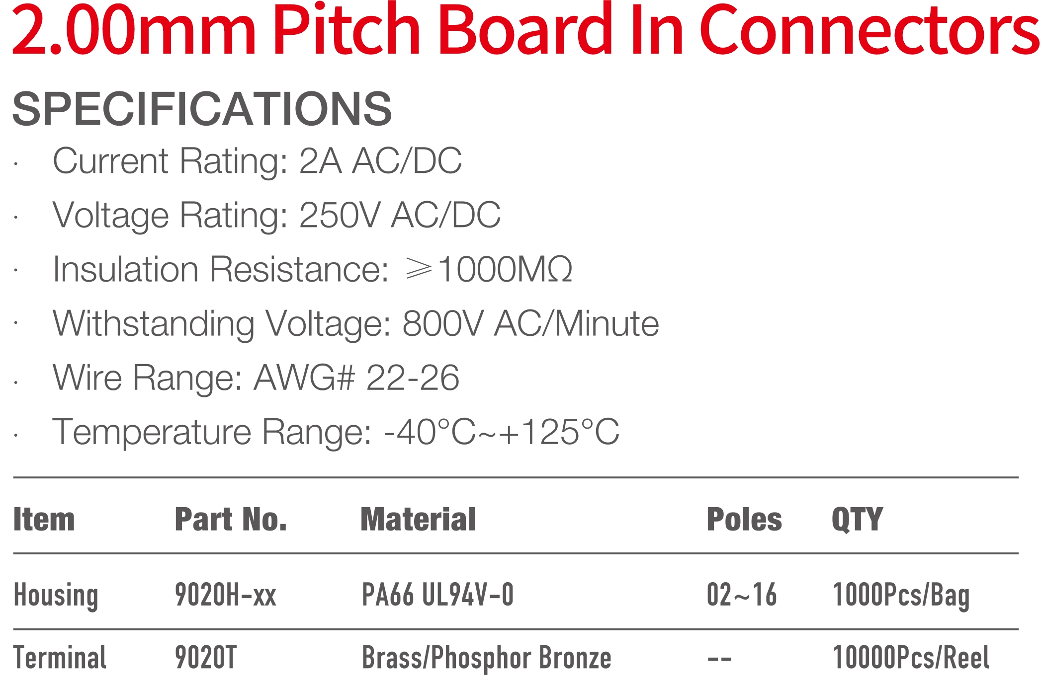 9020 Series 2.00mm Pitch (.079") 基板连接器