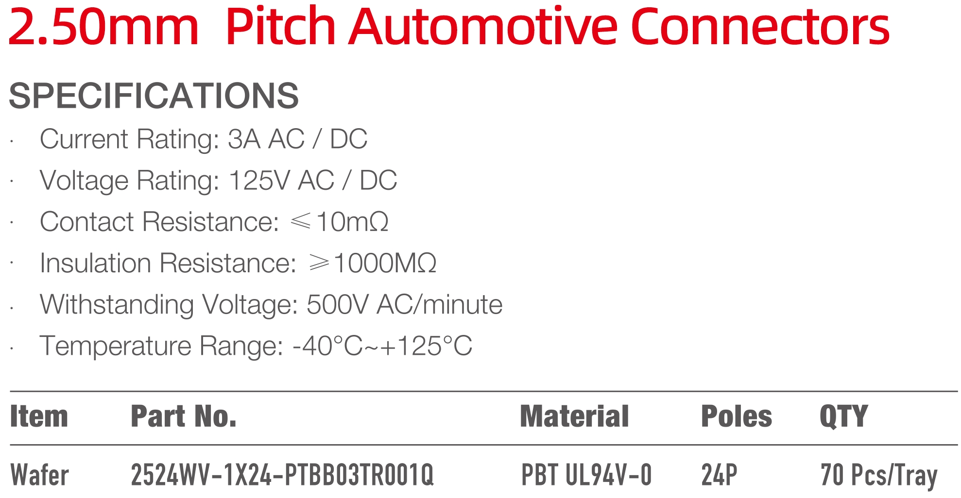 2524 Series 2.50mm Pitch (.098") 车用连接器