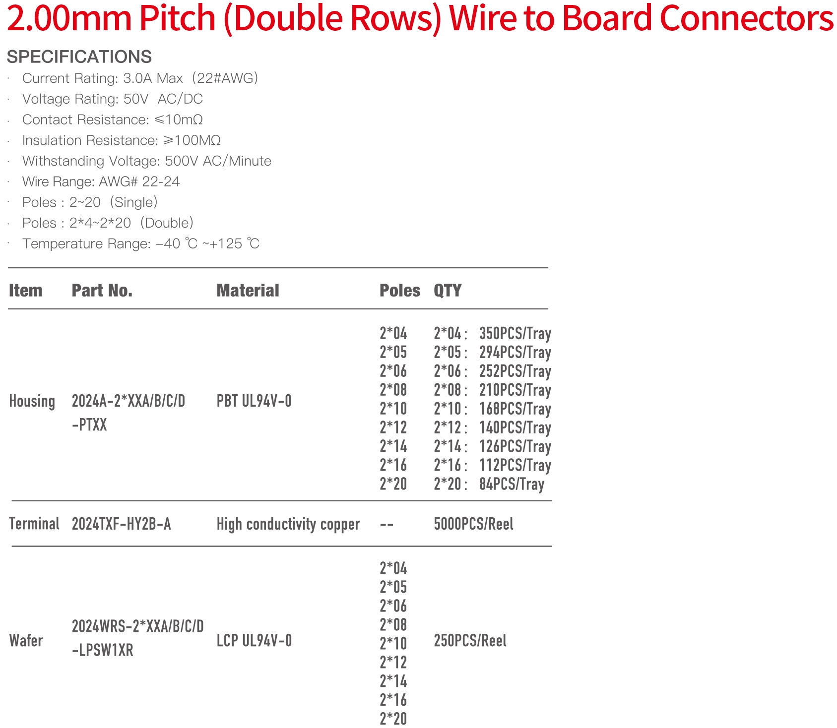 2024A Double Rows Series 2.00mm Pitch (.079") 线对板连接器