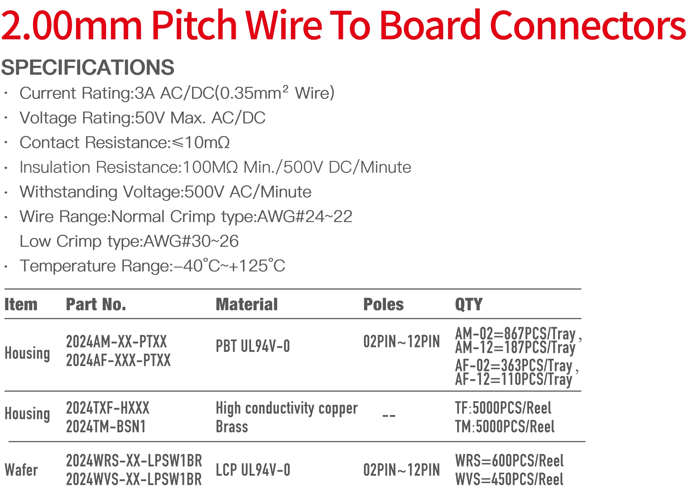 2024 Single Row Series 2.00mm Pitch (.079") 车用二次锁扣连接器